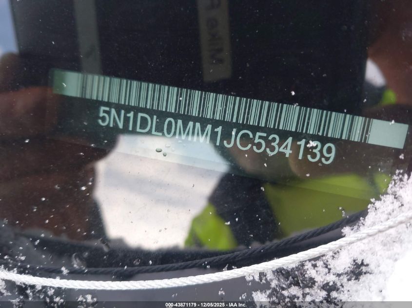 Цвет СинийЦилиндры 6Привод Полный приводVIN 5N1DL0MM1JC534139Состояние СтационарноПовреждения Левая сторонаДата аукциона 2025-12-10 AutoRIA