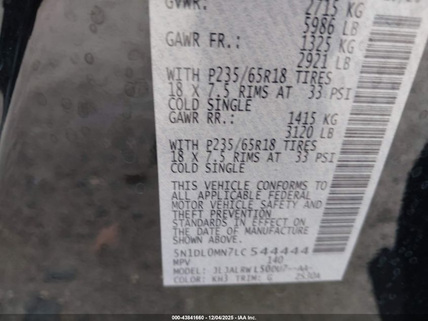 2020 INFINITI QX60 2020 року Бензин, 3.5, Передний привод, vin - 5N1DL0MN7LC544444 из США