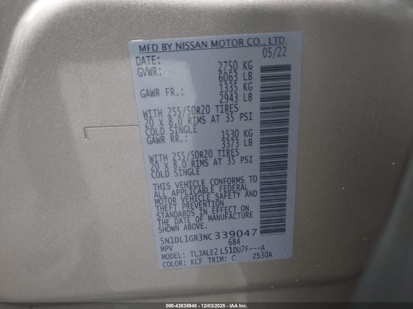 2022 INFINITI QX60 2022 року Бензин, 3.5, Передний привод, vin - 5N1DL1GR3NC339047 из США