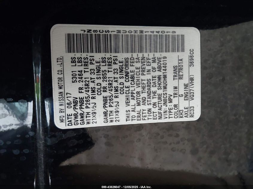 Цвет ЧерныйЦилиндры 6VIN JN8CS1MU0HM144019Состояние Заводится и едет (проверено)Повреждения Передняя или задняя AutoRIA