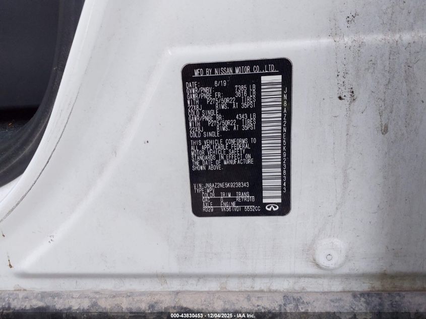 2019 INFINITI QX80 2019 року Бензин, 5.6, Полный привод, vin - JN8AZ2NE5K9238343 из США