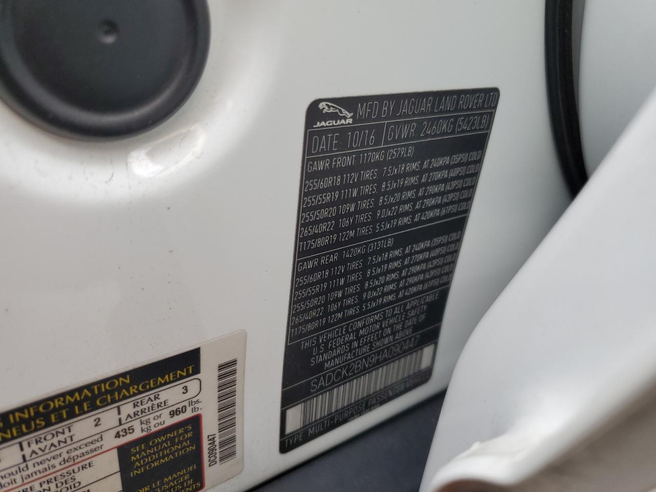 2017 JAGUAR F-PACE 2017 року Дизель, 2.0, Полный привод, vin - SADCK2BN9HA090447 из США