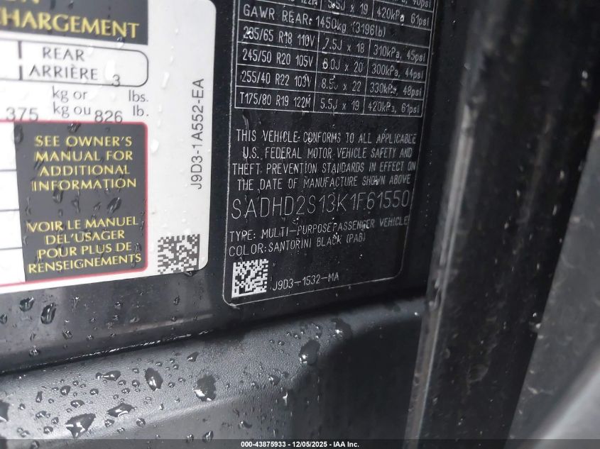 Цвет ЧерныйПривод Полный приводVIN SADHD2S13K1F61550Состояние Заводится и едет (проверено)Повреждения Передняя или задняя AutoRIA