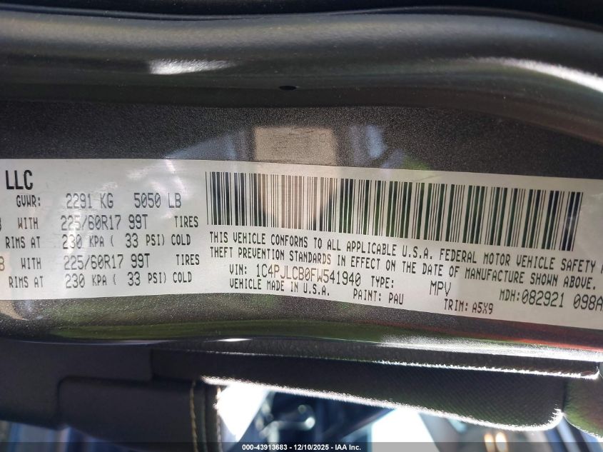 2015 JEEP CHEROKEE 2015 року Бензин, 2.4, Передний привод, vin - 1C4PJLCB0FW541940 из США
