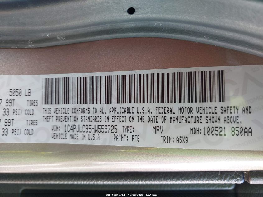 Цвет СерыйЦилиндры 4Привод Передний приводVIN 1C4PJLCB5HW559725Состояние Заводится и едет (проверено)Повреждения Задняя левая AutoRIA