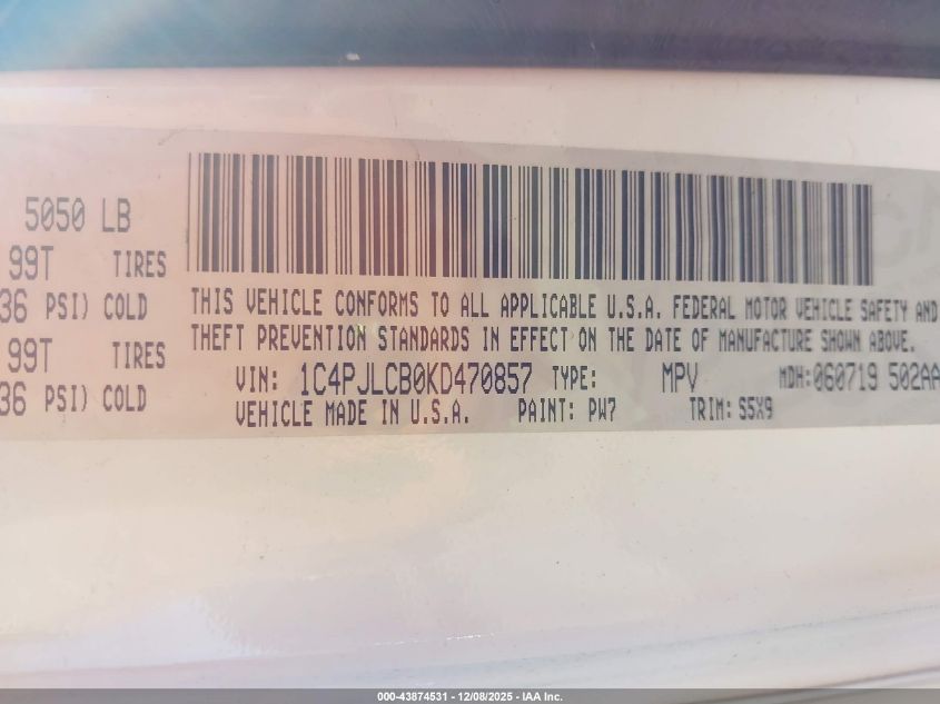 2019 JEEP CHEROKEE 2019 року Бензин, 2.4, Передний привод, vin - 1C4PJLCB0KD470857 из США