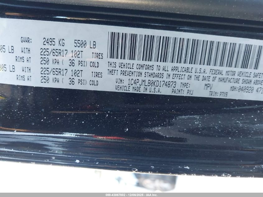 2019 JEEP CHEROKEE 2019 року Бензин, 2.4, Полный привод, vin - 1C4PJMLB0KD174873 из США