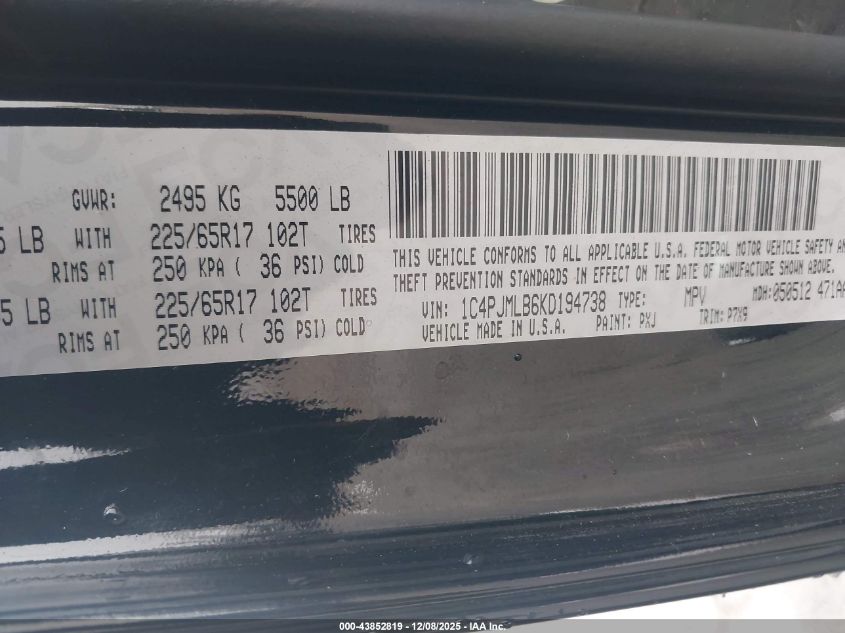 2019 JEEP CHEROKEE 2019 року Бензин, 2.4, Полный привод, vin - 1C4PJMLB6KD194738 из США