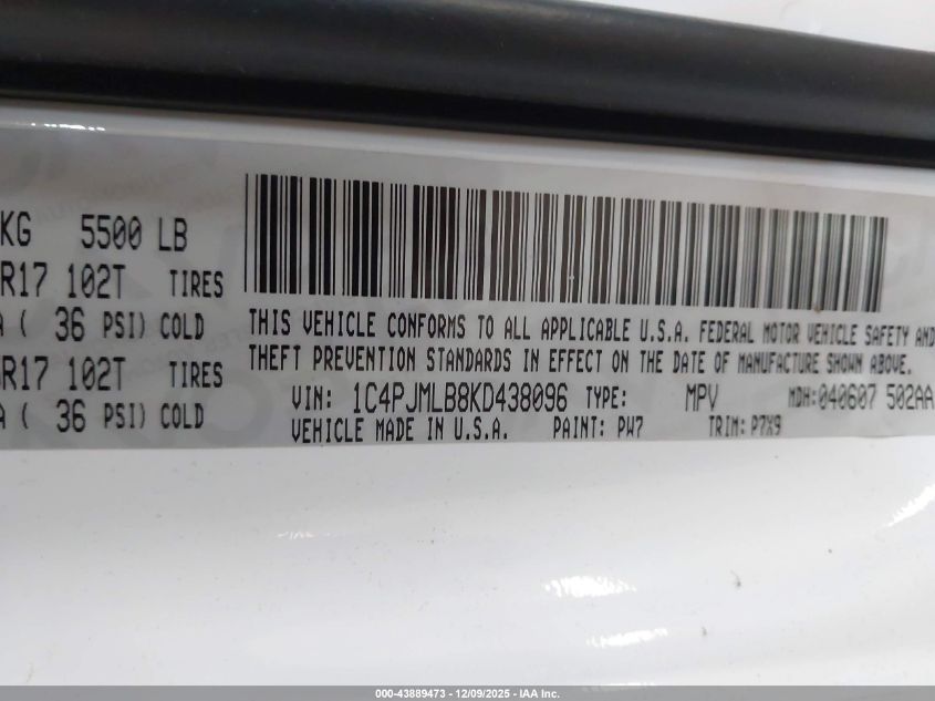 2019 JEEP CHEROKEE 2019 року Бензин, 2.4, Полный привод, vin - 1C4PJMLB8KD438096 из США