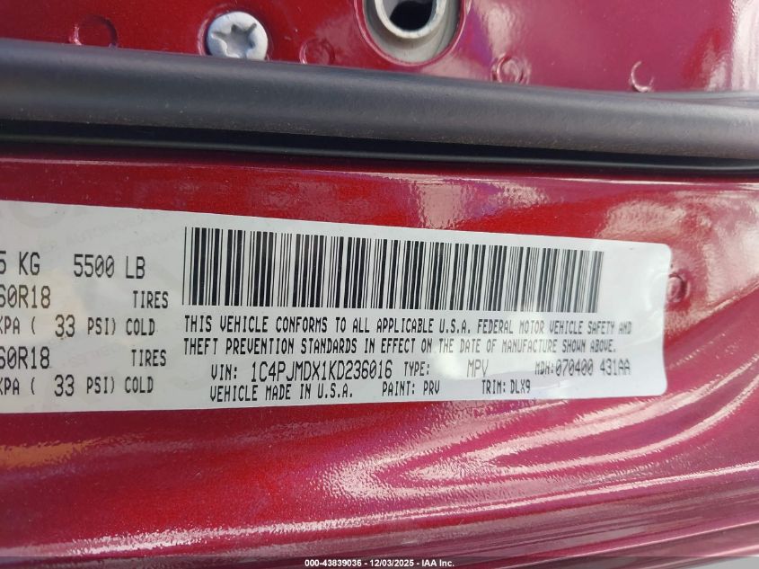 Цвет КрасныйЦилиндры 6Привод Полный приводVIN 1C4PJMDX1KD236016Состояние Заводится и едет (проверено)Повреждения Передняя или задняя AutoRIA