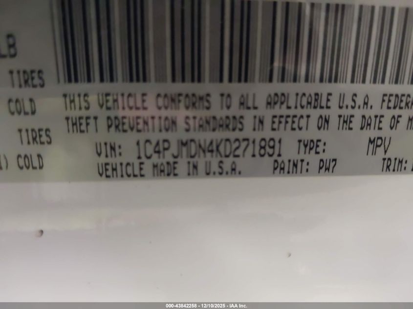 Цвет БелыйЦилиндры 4Привод Полный приводVIN 1C4PJMDN4KD271891Состояние Заводится и едет (проверено)Повреждения Передняя или задняя AutoRIA