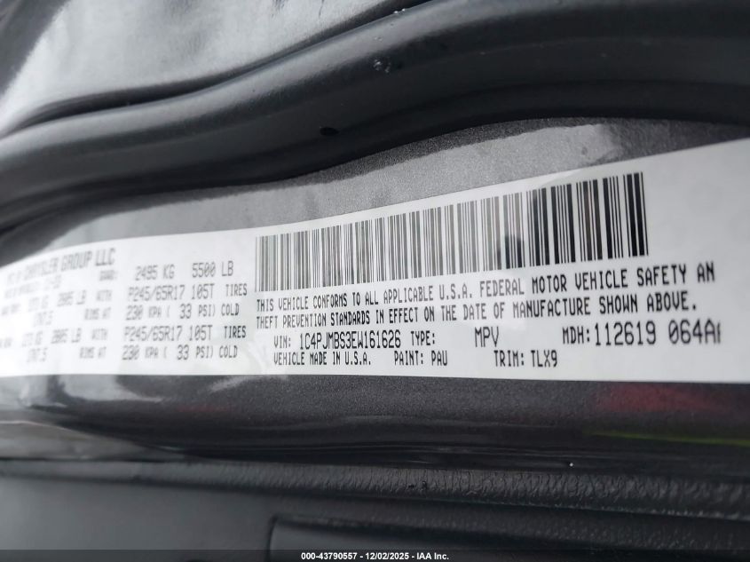 Цвет СерыйЦилиндры 6Привод Полный приводVIN 1C4PJMBS3EW161626Состояние СтационарноПовреждения По бокам AutoRIA