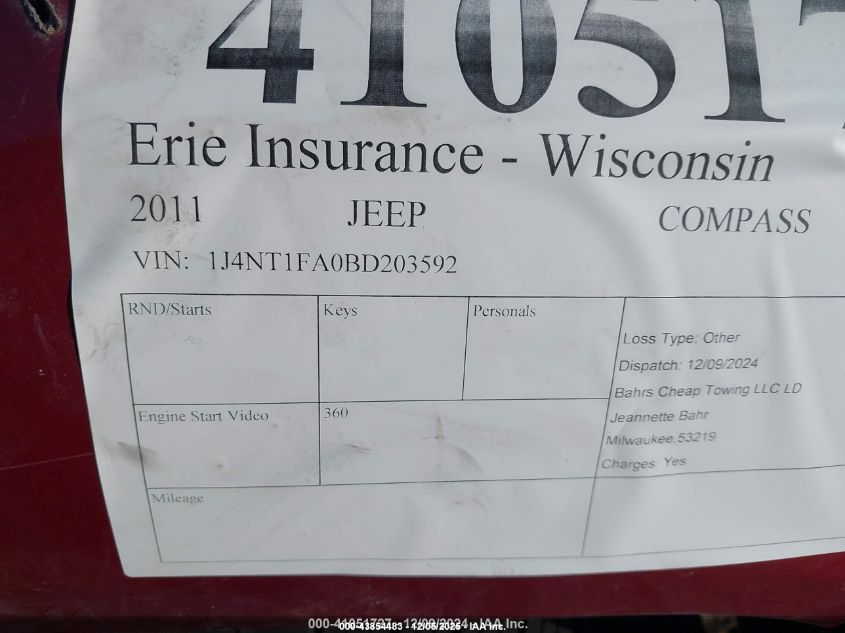 2011 JEEP COMPASS 2011 року Бензин, 2.0, Передний привод, vin - 1J4NT1FA0BD203592 из США