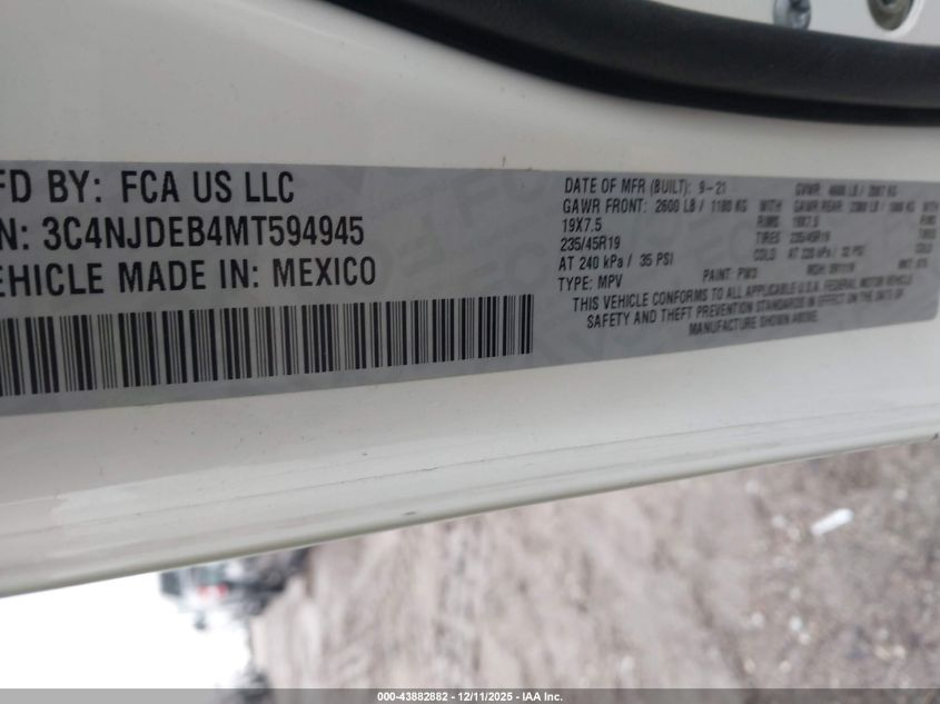 2021 JEEP COMPASS 2021 року Бензин, 2.4, Полный привод, vin - 3C4NJDEB4MT594945 из США