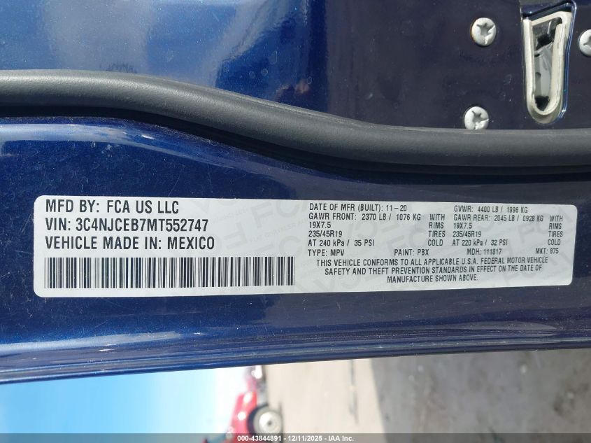 2021 JEEP COMPASS 2021 року Бензин, 2.4, Передний привод, vin - 3C4NJCEB7MT552747 из США