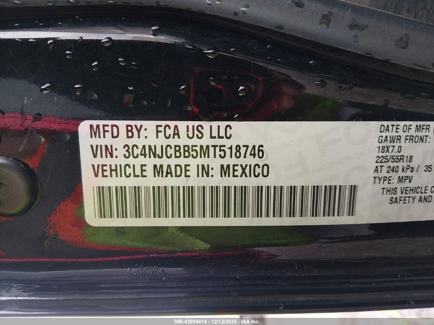 2021 JEEP COMPASS 2021 року Бензин, 2.4, Передний привод, vin - 3C4NJCBB5MT518746 из США