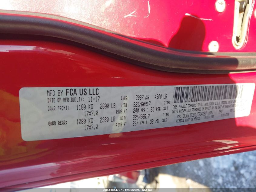 Цвет КрасныйЦилиндры 4Привод Полный приводVIN 3C4NJDBB1JT234192Состояние СтационарноПовреждения Передняя или задняя AutoRIA