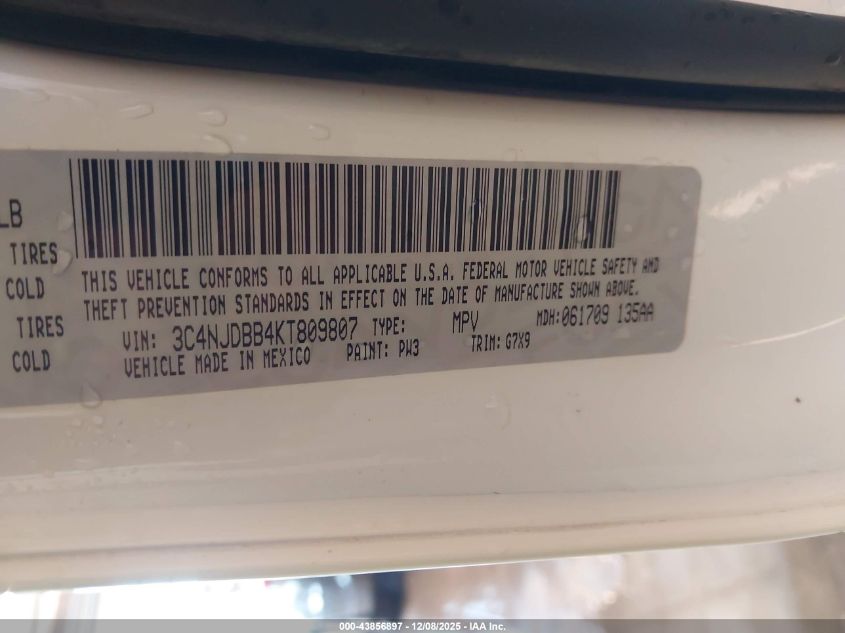Цвет БелыйЦилиндры 4Привод Полный приводVIN 3C4NJDBB4KT809807Состояние СтационарноПовреждения Левая сторона AutoRIA