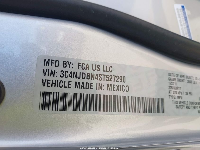 Цвет СеребряныйЦилиндры 4Привод Полный приводVIN 3C4NJDBN4ST527290Состояние Заводится и едет (проверено)Повреждения Передняя или задняя AutoRIA
