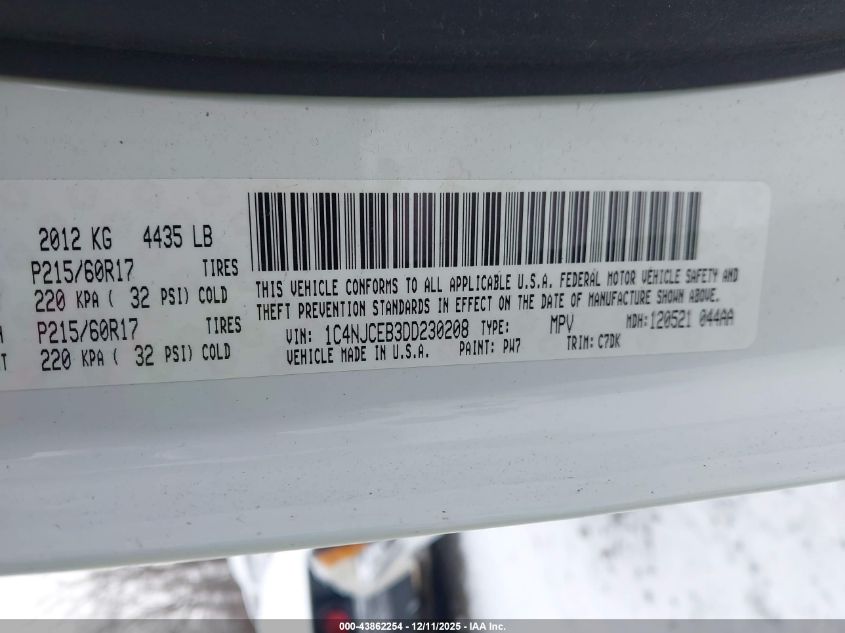 Цвет Цилиндры 4Привод Передний приводVIN 1C4NJCEB3DD230208Состояние НеизвестноПовреждения Левая сторона AutoRIA