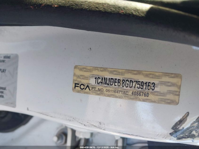 Цвет БелыйЦилиндры 4Привод Полный приводVIN 1C4NJDEB8GD759163Состояние СтационарноПовреждения Передняя или задняя AutoRIA