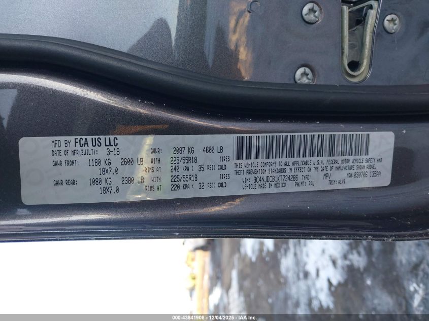 Цвет СерыйЦилиндры 4Привод Полный приводVIN 3C4NJDCB1KT734286Состояние СтационарноПовреждения Крыша AutoRIA