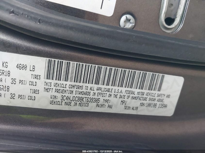 Цвет СерыйЦилиндры 4Привод Полный приводVIN 3C4NJDCB8KT639305Состояние СтационарноПовреждения Передняя или задняя AutoRIA