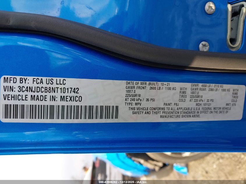 Цвет СинийЦилиндры 4Привод Полный приводVIN 3C4NJDCB8NT101742Состояние Заводится и едет (проверено)Повреждения Передняя и задняя AutoRIA