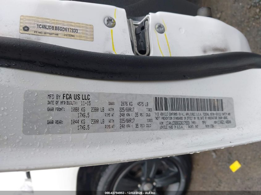 2016 JEEP COMPASS 2016 року Бензин, 2.4, Полный привод, vin - 1C4NJDBB6GD617933 из США