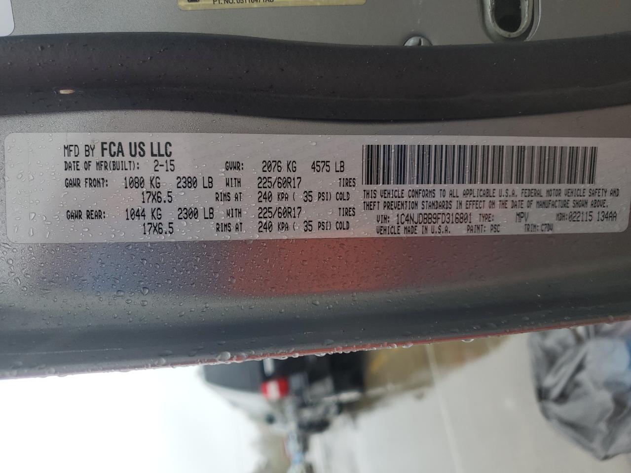 2015 JEEP COMPASS 2015 року Бензин, 2.4, 4x4 с передним приводом, vin - 1C4NJDBB9FD316801 из США