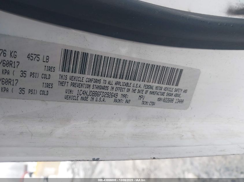 Цвет БелыйЦилиндры 4Привод Полный приводVIN 1C4NJDBB6FD292649Состояние СтационарноПовреждения Передняя или задняя AutoRIA