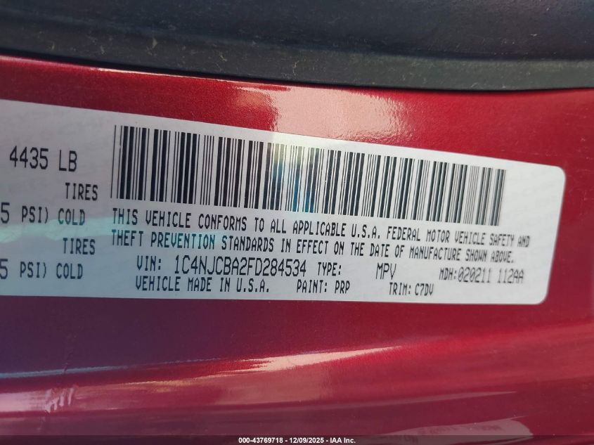 2015 JEEP COMPASS 2015 року Бензин, 2.0, Передний привод, vin - 1C4NJCBA2FD284534 из США