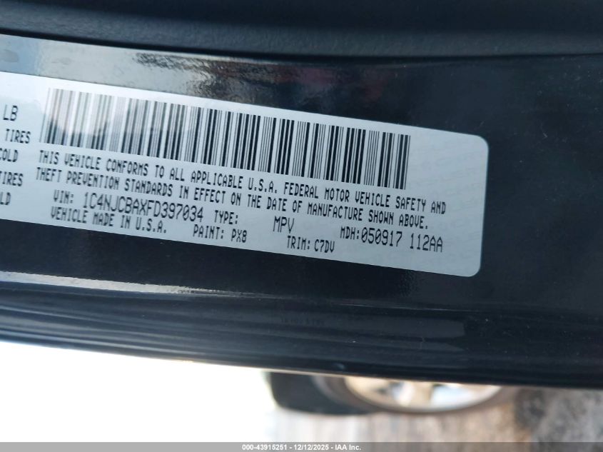 2015 JEEP COMPASS 2015 року Бензин, 2.0, Передний привод, vin - 1C4NJCBAXFD397034 из США