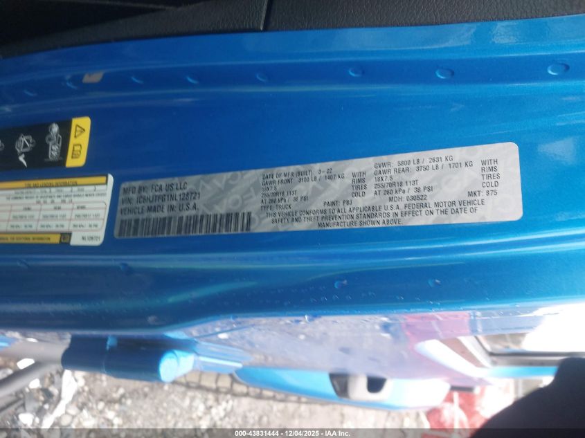 2022 JEEP GLADIATOR 2022 року Бензин, 3.6, Полный привод, vin - 1C6HJTFG1NL128721 из США
