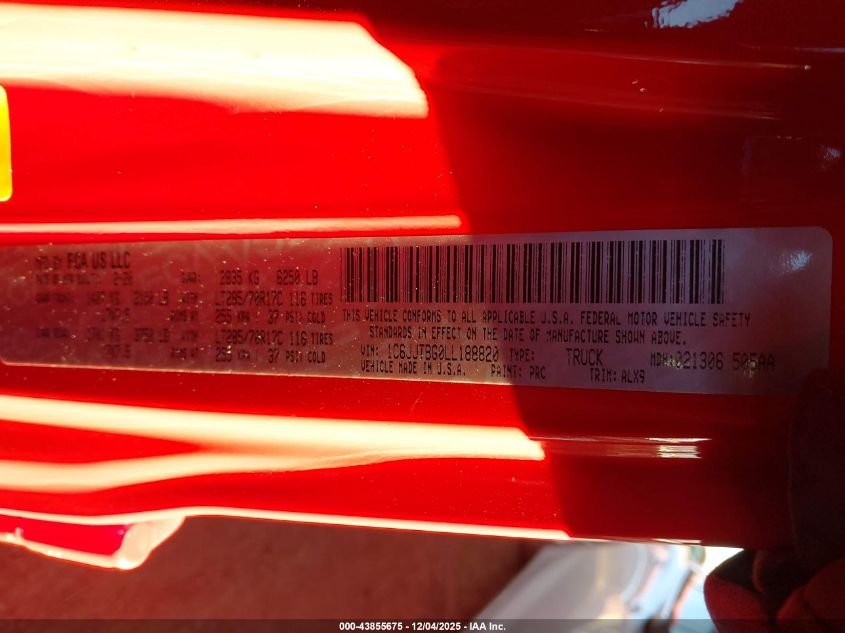 2020 JEEP GLADIATOR 2020 року Бензин, 3.6, Полный привод, vin - 1C6JJTBG0LL188820 из США