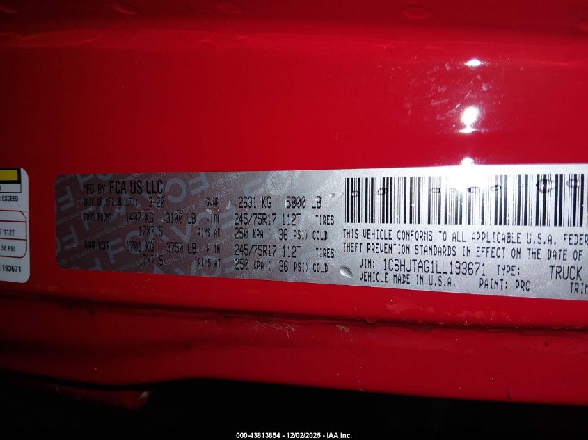 2020 JEEP GLADIATOR 2020 року Бензин, 3.6, Полный привод, vin - 1C6HJTAG1LL193671 из США