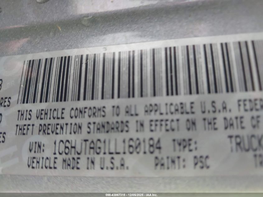 2020 JEEP GLADIATOR 2020 року Бензин, 3.6, Полный привод, vin - 1C6HJTAG1LL160184 из США