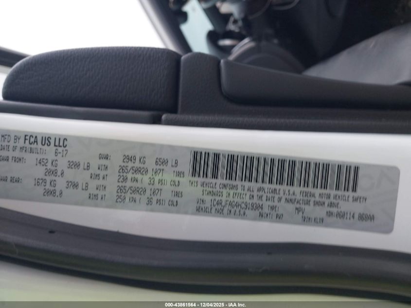 2017 JEEP GRAND CHEROKEE 2017 року Бензин, 3.6, Полный привод, vin - 1C4RJFAG4HC919304 из США
