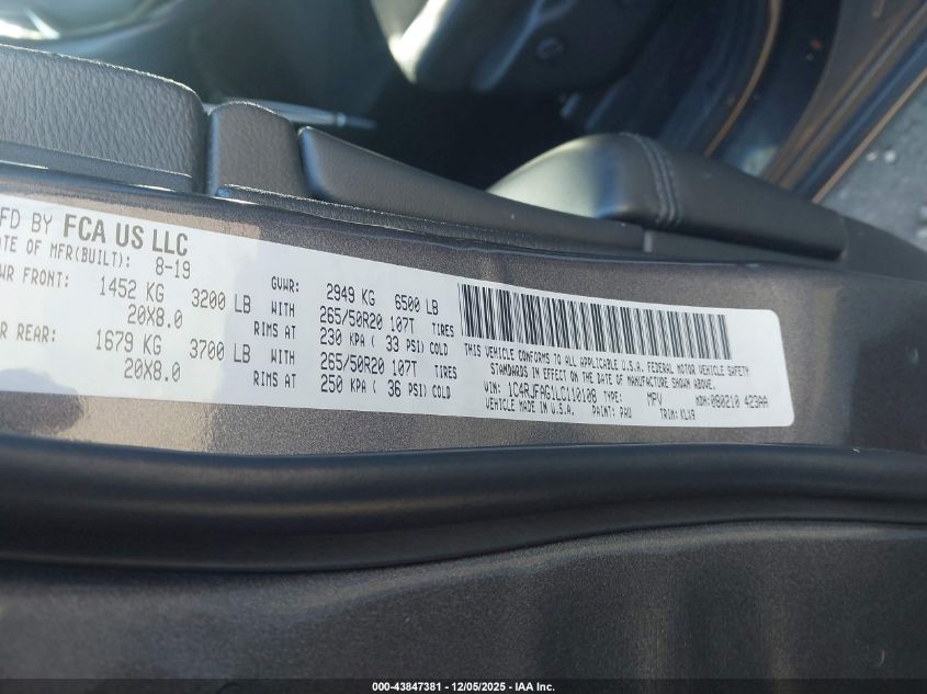 2020 JEEP GRAND CHEROKEE 2020 року Бензин, 3.6, Полный привод, vin - 1C4RJFAG1LC110108 из США