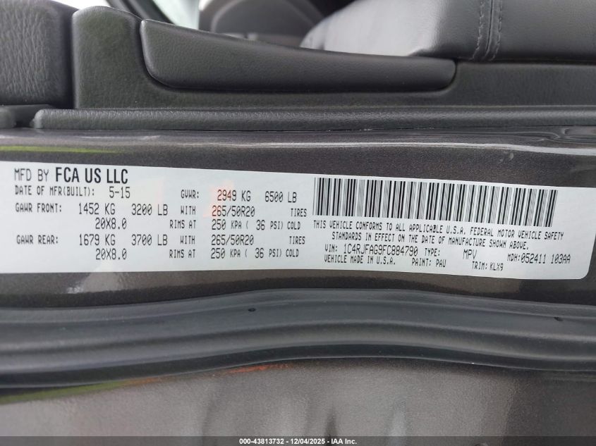 2015 JEEP GRAND CHEROKEE 2015 року Бензин, 3.6, Полный привод, vin - 1C4RJFAG9FC884790 из США