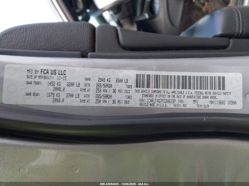 2015 JEEP GRAND CHEROKEE 2015 року Бензин, 3.6, Полный привод, vin - 1C4RJFAG7FC206197 из США