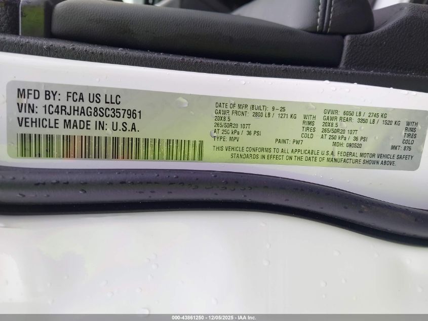 2025 JEEP GRAND CHEROKEE 2025 року Бензин, 3.6, Полный привод, vin - 1C4RJHAG8SC357961 из США