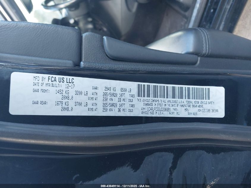 2018 JEEP GRAND CHEROKEE 2018 року Бензин, 3.6, Полный привод, vin - 1C4RJFCG3JC236691 из США