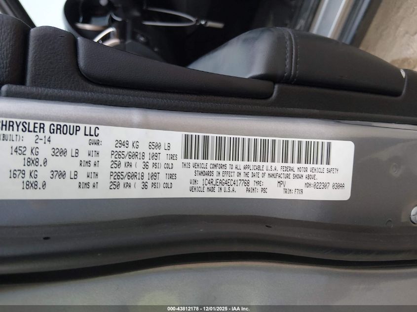 2014 JEEP GRAND CHEROKEE 2014 року Бензин, 3.6, , vin - 1C4RJEAG4EC417768 из США