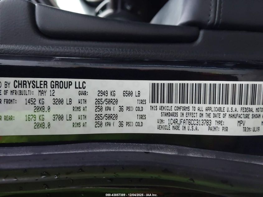 Цвет ЧерныйЦилиндры 8Привод Полный приводVIN 1C4RJFAT6CC313783Состояние Заводится и едет (проверено)Повреждения Передняя или задняя AutoRIA