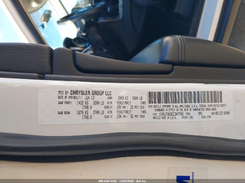 Цвет БелыйЦилиндры 6Привод Полный приводVIN 1C4RJFAG9CC347705Состояние СтационарноПовреждения Левая сторона AutoRIA