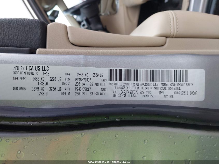 2015 JEEP GRAND CHEROKEE 2015 року Бензин, 3.6, Полный привод, vin - 1C4RJFAG8FC751826 из США