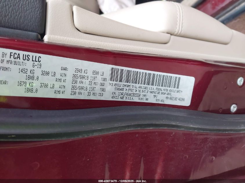 Цвет КрасныйЦилиндры 6Привод Полный приводVIN 1C4RJFAG4KC825530Состояние СтационарноПовреждения Передняя или задняя AutoRIA