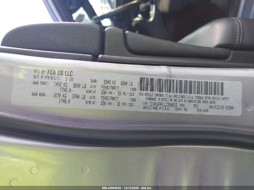 2020 JEEP GRAND CHEROKEE 2020 року Бензин, 3.6, Полный привод, vin - 1C4RJFAG1LC294515 из США