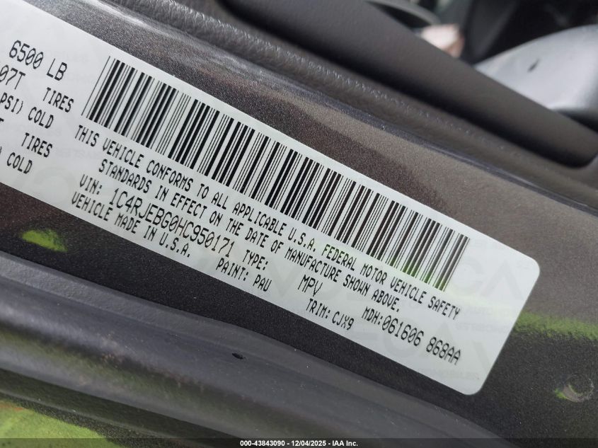 2017 JEEP GRAND CHEROKEE 2017 року Бензин, 3.6, , vin - 1C4RJEBG0HC950171 из США